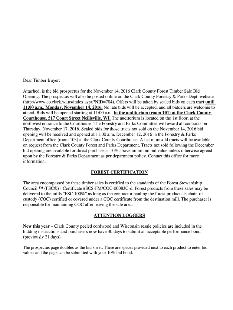 Get the free Dear Timber Buyer: Attached, is the bid ... - Clark County, WI