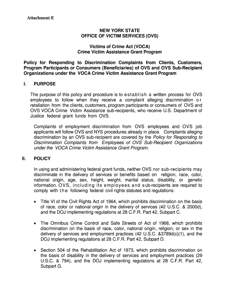 Get the free New York State Office of Victim Services Victims of Crime Act ... - ovs ny