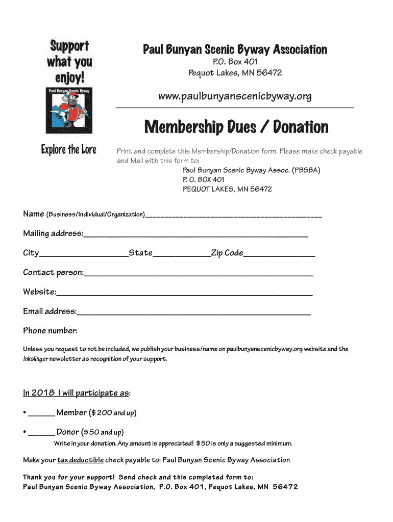Get the free New Membership Form-2018 - paulbunyanscenicbyway.org