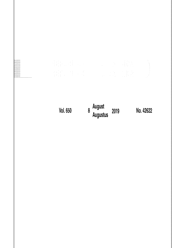 Augustus2019No. 426222NO.42622GOVERNMENT GAZETTE, 8 AUGUST 2019STAATSKOERANT, 8 AUGUSTUS 2019NO.426223For purposes of reference, all Proclamations, Government