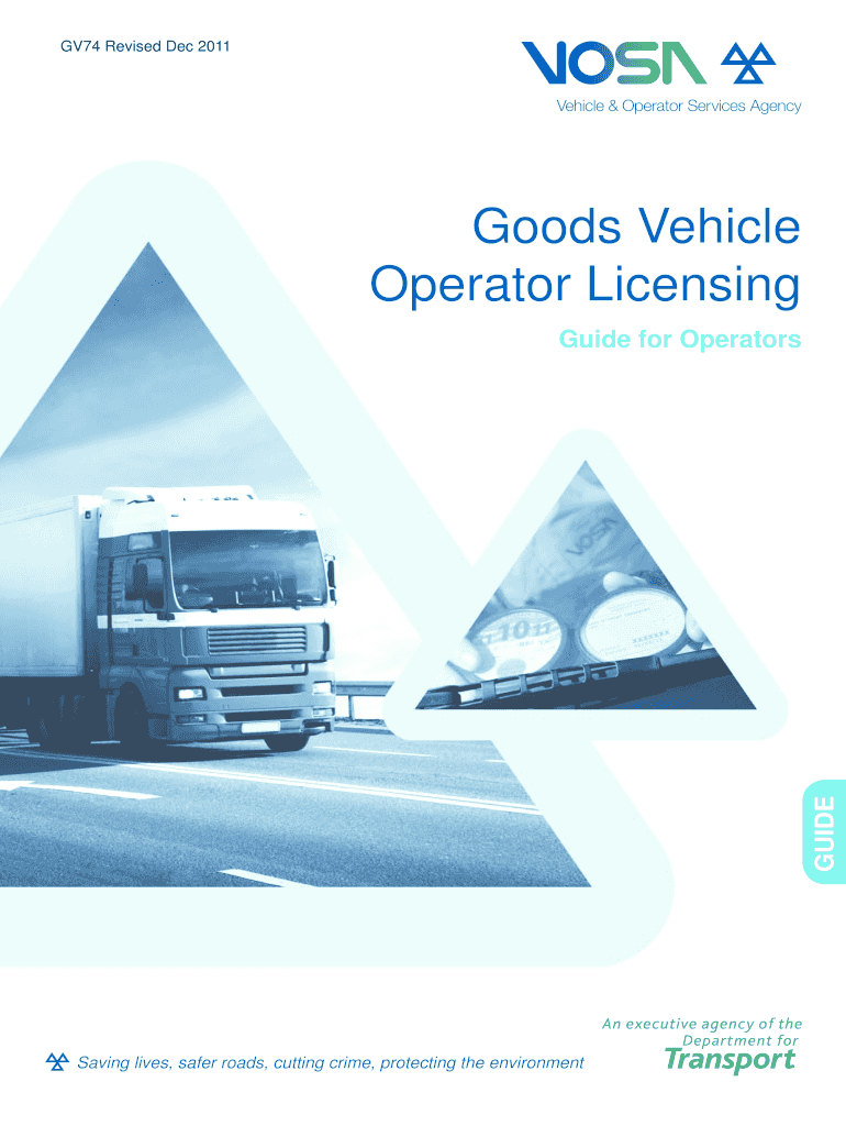 Operator LicensingGUIDEGuide for OperatorsSaving lives, safer roads, cutting crime, protecting the environmentGV74 Revised Dec 2011Goods Vehicle