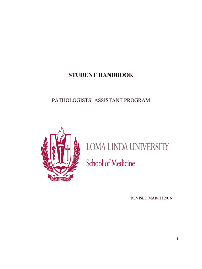 STUDENT HANDBOOKPATHOLOGISTS ASSISTANT PROGRAMREVISED MARCH 20161I, have received the Pathologists Assistant (Students name) Student Handbook. I understand that this policy is effective throughout