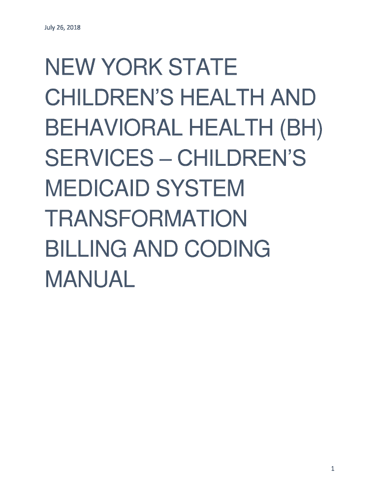 July 26, 2018NEW YORK STATE CHILDREN HEALTH AND BEHAVIORAL HEALTH (BH) SERVICES CHILDREN MEDICAID SYSTEM TRANSFORMATION BILLING AND CODING MANUAL1July 26, 2018Table of Contents General..........................................................................................................................................................