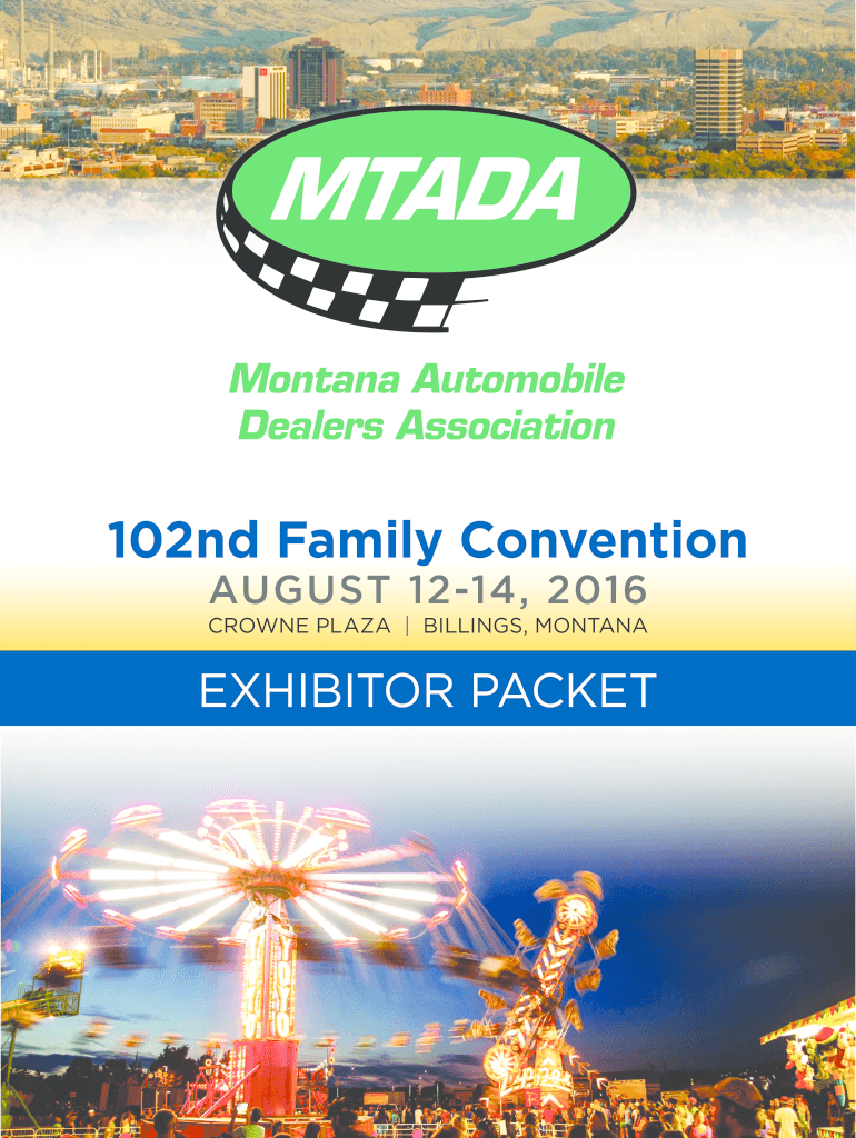 Montana Automobile Dealers Association102nd Family Convention AUGUST 1214, 2016CROWNE PLAZA BILLINGS, MONTANAEXHIBITOR PACKET102nd Family Convention Montana Automobile Dealers AssociationEXHIBITOR