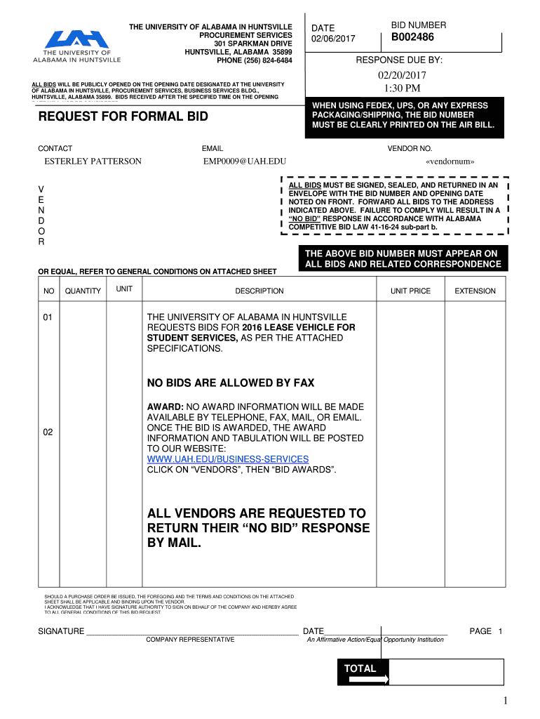 PHONE (256) 8246484EMAILESTERLEY PATTERSONVENDOR NO.EMP0009×UAH.EDUvendornum