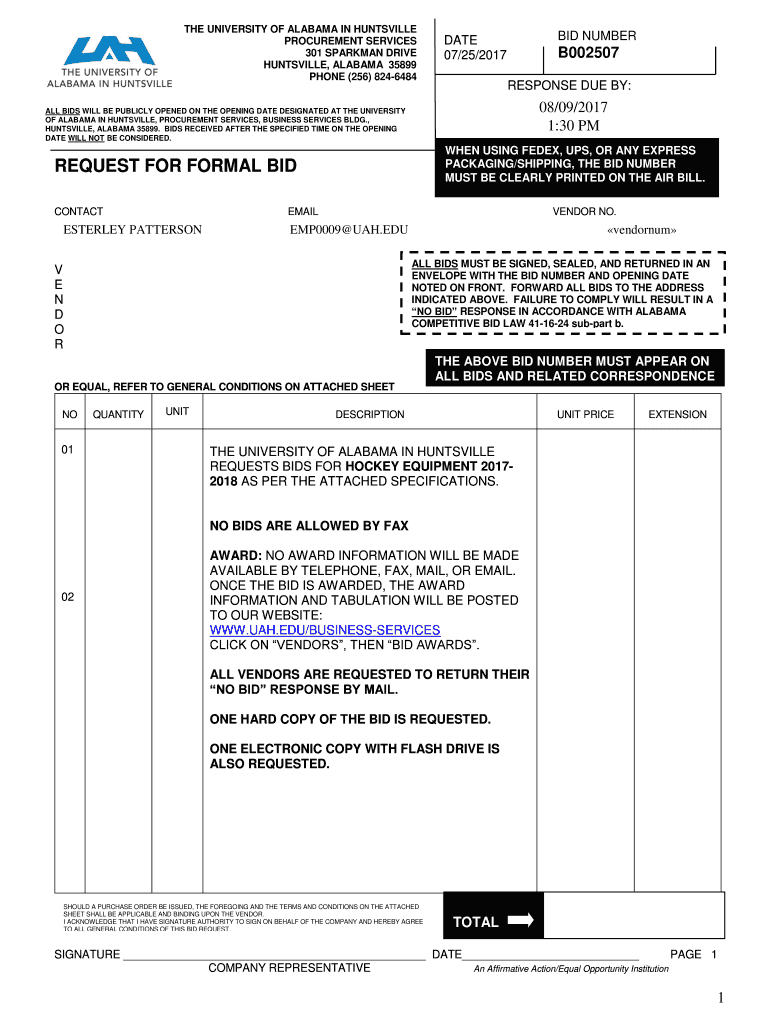 THE UNIVERSITY OF ALABAMA IN HUNTSVILLE