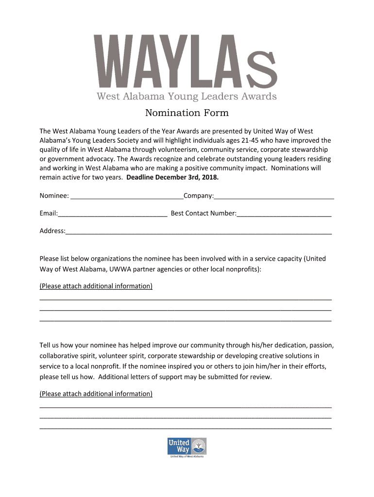 Anyone who wants to nominate someone for a specific purpose or recognition may need the nomination form on uwwa.org.