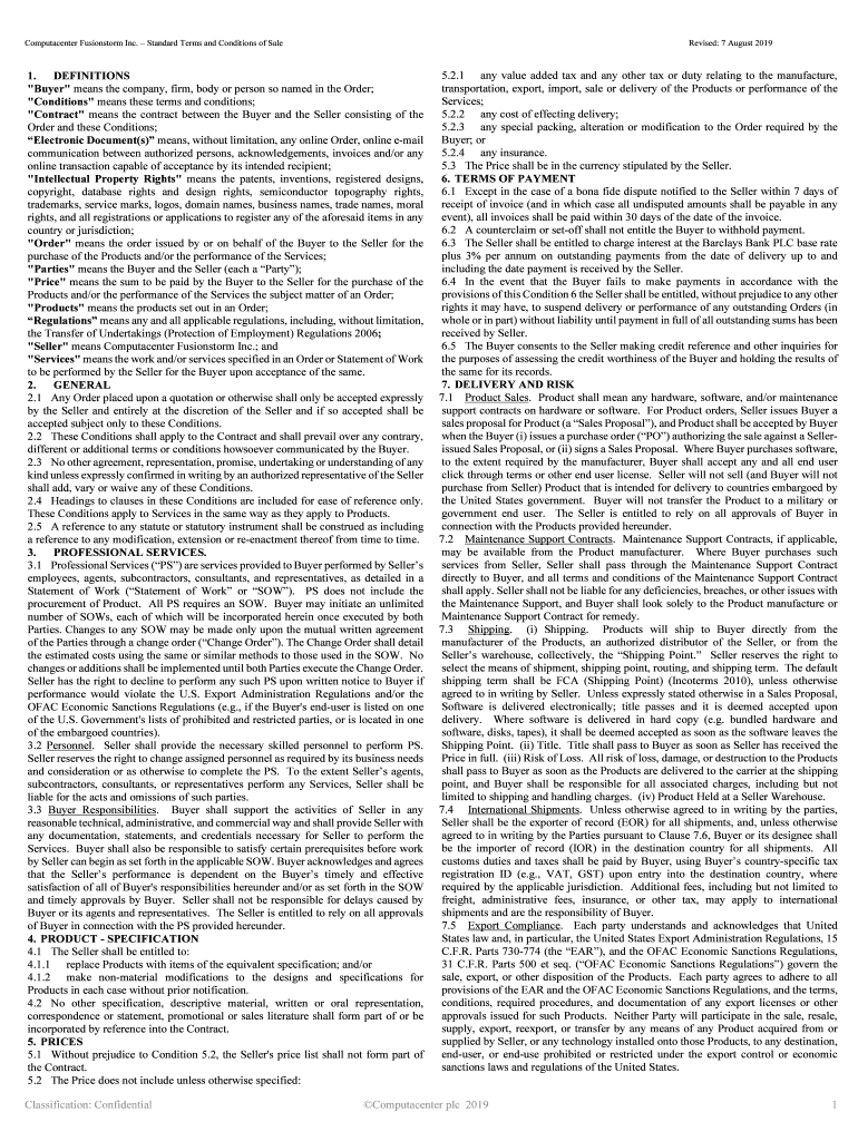 Computacenter Fusion storm Inc. Standard Terms and Conditions of Supervised: 7 August 20191. DEFINITIONS “Buyer means the company, firm, body or person so named in the Order; “Conditions means