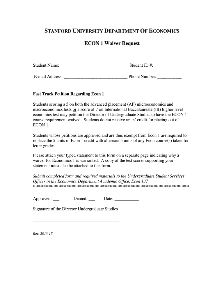Get the free ECON 1 Waiver Request - economics stanford
