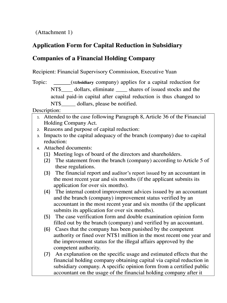 Get the free Application Form for Capital Reduction in Subsidiary ...