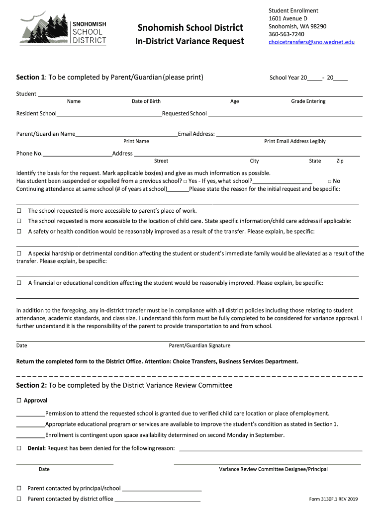 DISTRICTInDistrict Variance RequestSection 1: To be completed by Parent/Guardian