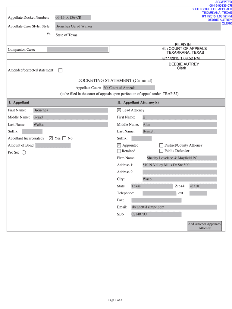Appellate Docket Number:061500136CRAppellate Case Style: Style:Branches Gerald Walkers. ACCEPTED