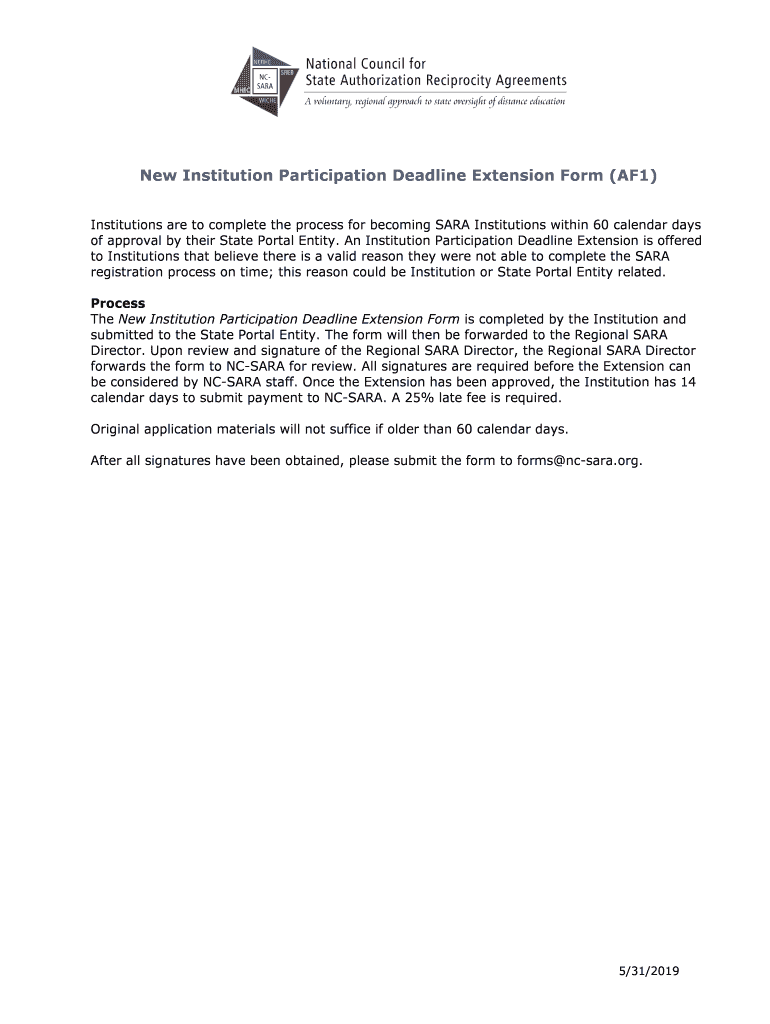 Get the free New Institution Participation Deadline Extension Form (AF1)