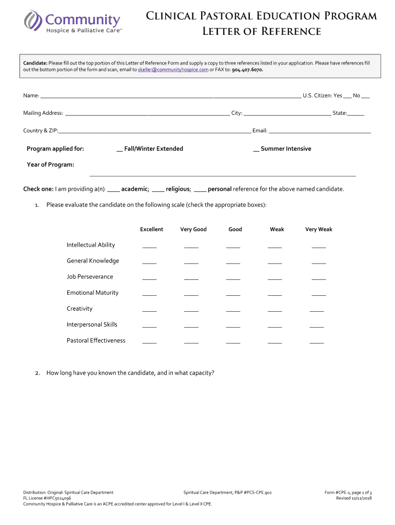 Candidate: Please fill out the top portion of this Letter of Reference Form and supply a copy to three references listed in your application. Please have references fill out the bottom portion of