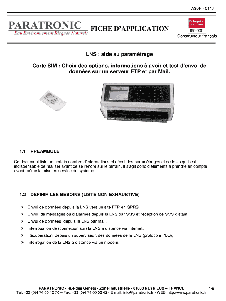 Get the free fiche d'application - Paratronic