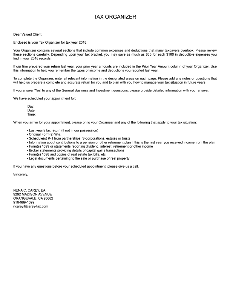 Get the free Enclosed is your Tax Organizer for tax year 2018