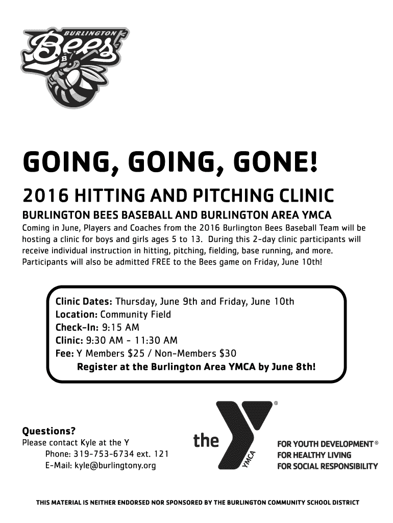 BURLINGTON BEES BASEBALL AND BURLINGTON AREA YMCA