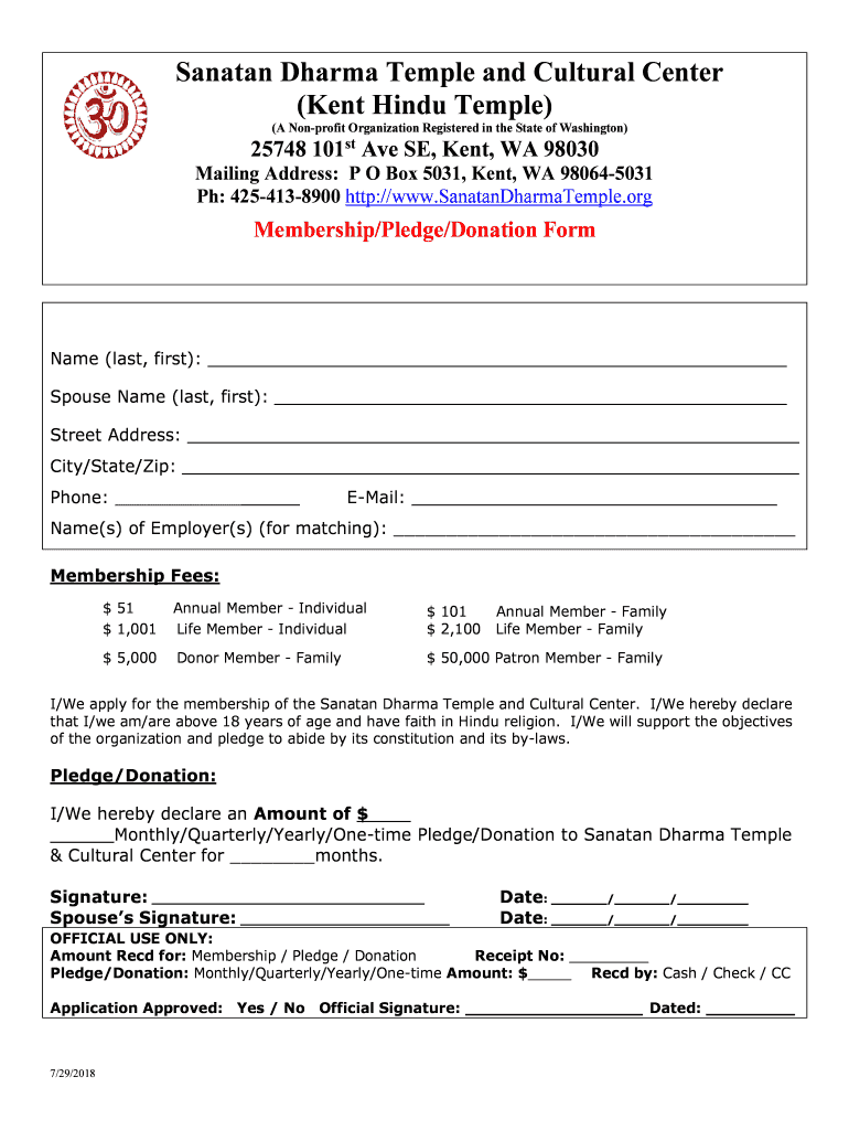 Get the free SDTCC Membership-Pledge Form - Kent Hindu Temple