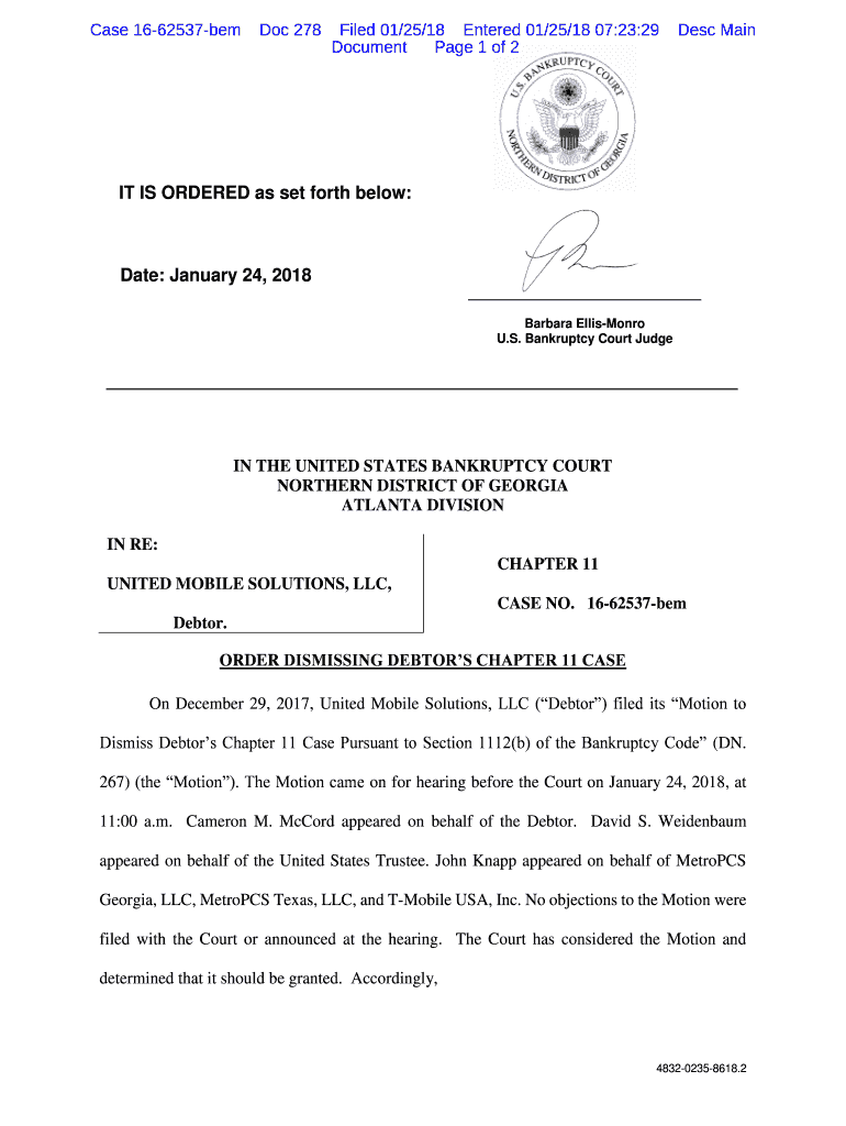 Case 1662537bemDoc 278Filed 01/25/18 Entered 01/25/18 07:23:29 Document Page 1 of 2Desc Main IT IS ORDERED as set forth below:Date: January 24, 2018, Barbara Ellison U.S. Bankruptcy Court Judge IN
