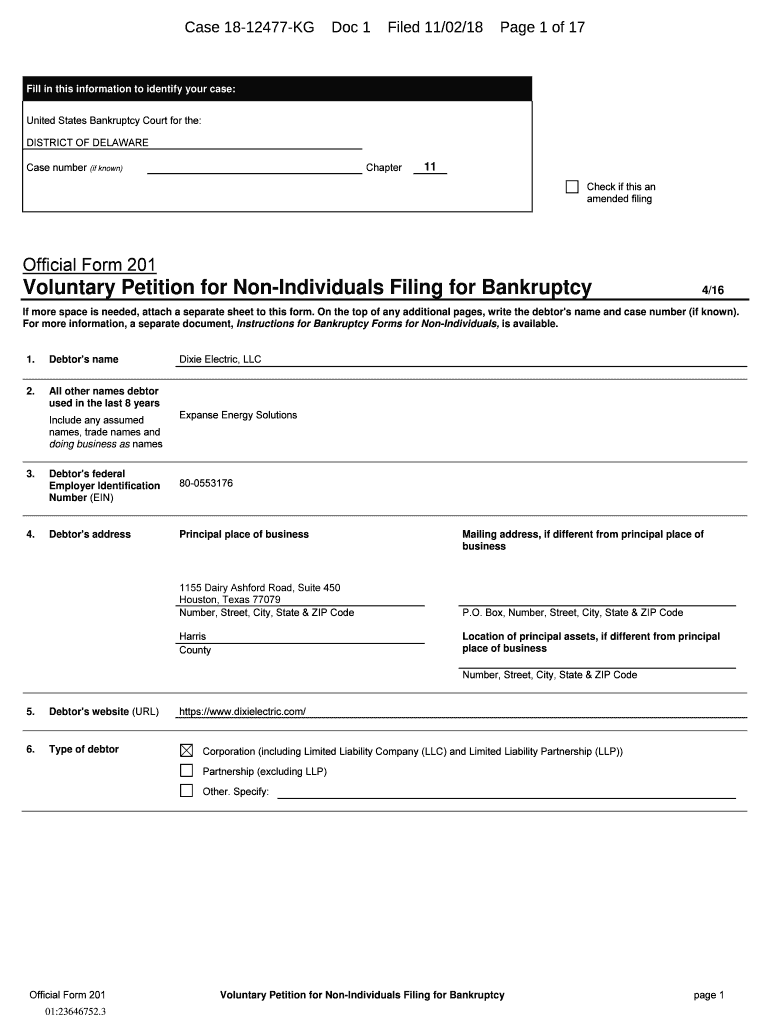 Case 1812477KGDoc 1Filed 11/02/18Page 1 of 17Fill in this information to identify your case: