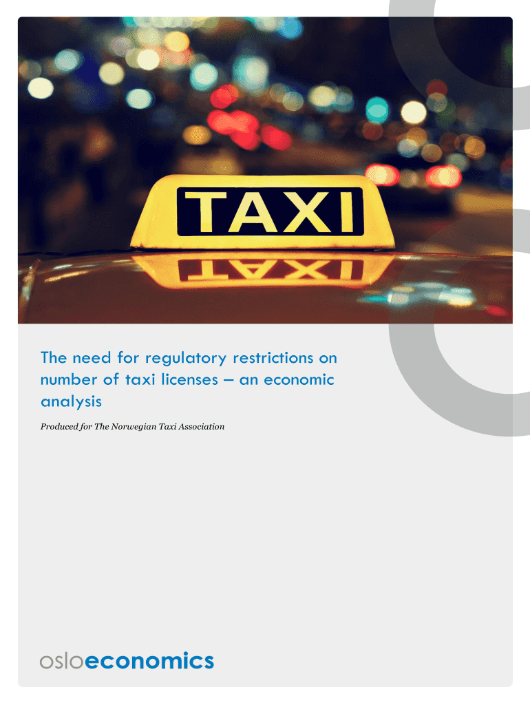 The need for regulatory restrictions on number of taxi licenses an economic analysis Produced for The Norwegian Taxi AssociationAbout Oslo Economics provides economic analysis and strategic advice