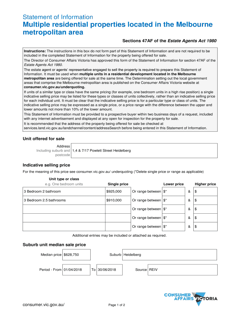 Statement of InformationMultiple residential properties located in the Melbourne
