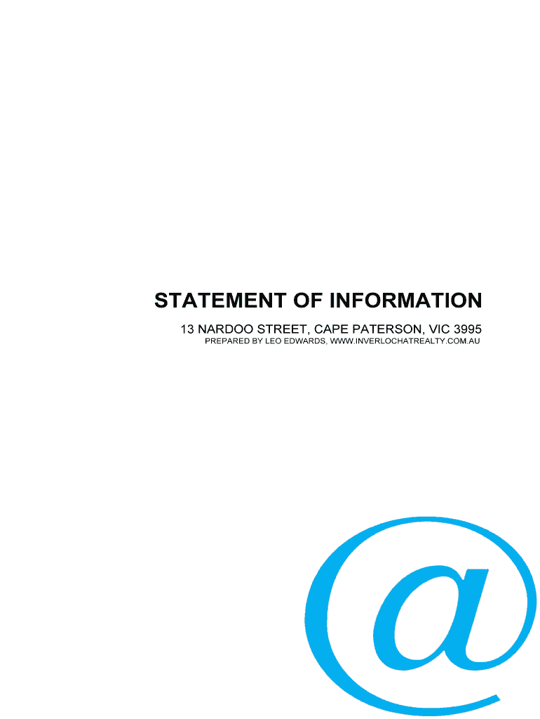 PREPARED BY LEO EDWARDS, WWW.INVERLOCHATREALTY.COM. Statement of InformationSingle residential property located outside the Melbourne