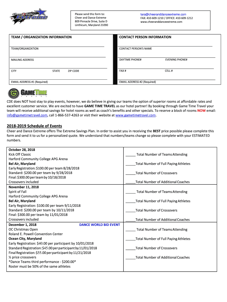 Get the free 2018-2019 Schedule of Events - Cheer & Dance Extreme