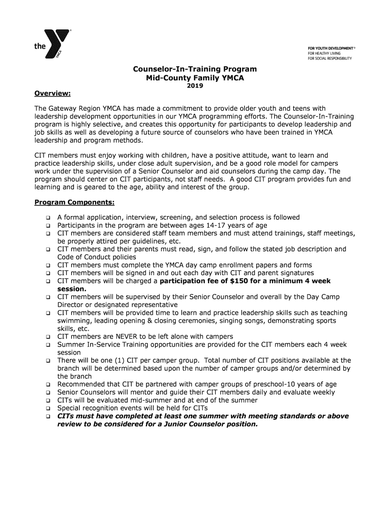 Overview:2019The Gateway Region YMCA has made a commitment to provide older youth and teens with