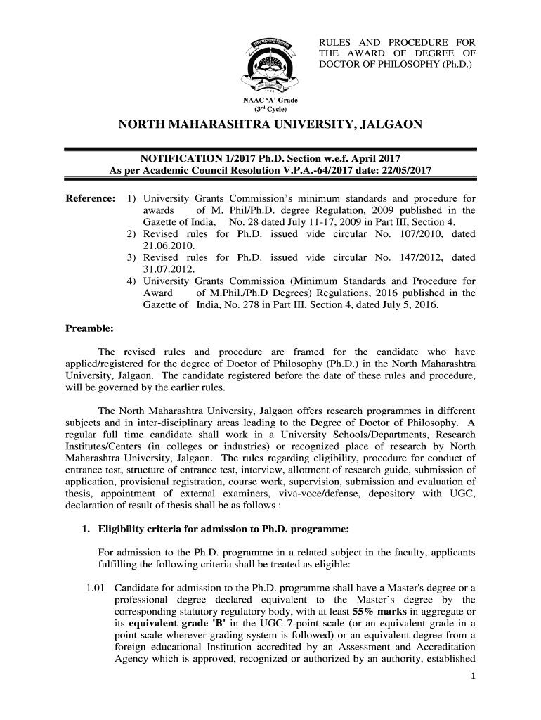 NOTIFICATION 1/2017 Ph.D. Section w.e.f. April 2017