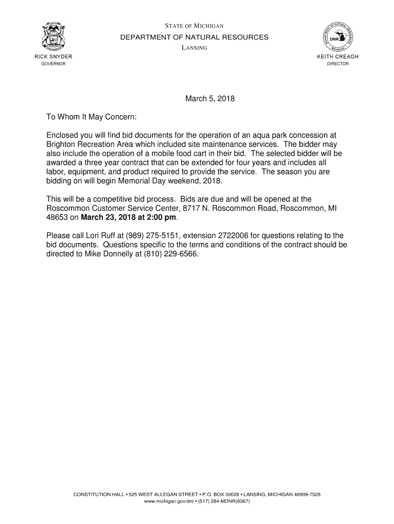 RICK SNYDERKEITH CREAGHGOVERNORDIRECTORMarch 5, 2018