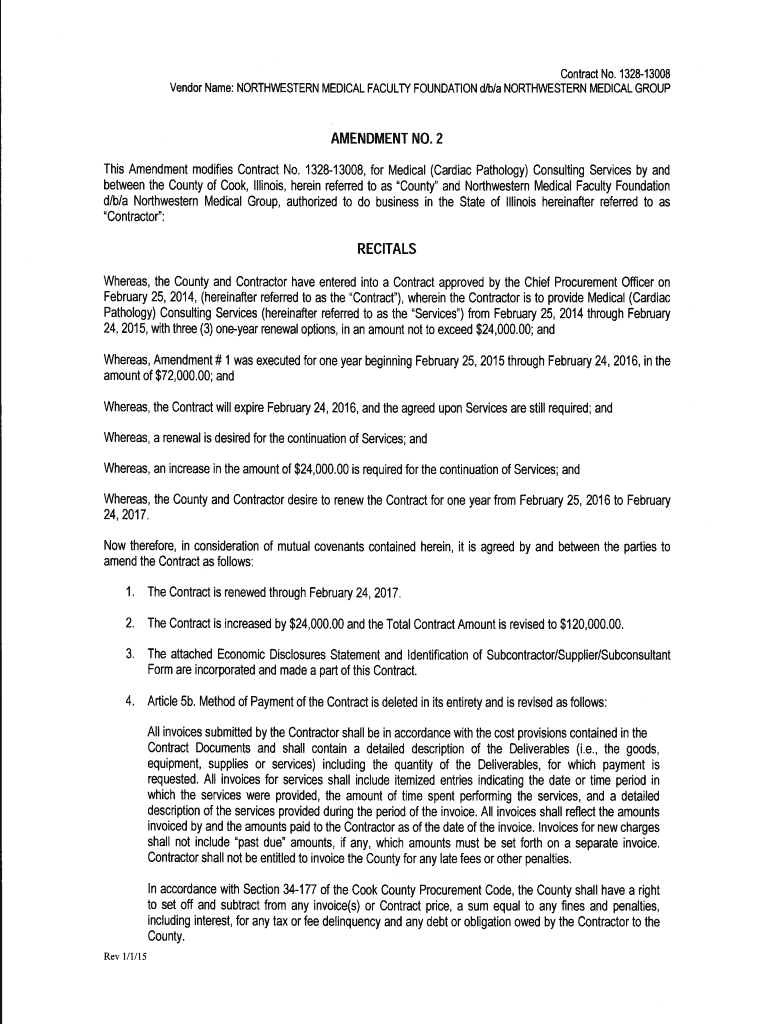 Vendor Nam e : N northwest RN M MEDICAL FACULTYFoUNDATIoN d/b/another# 1ffi,J, i.fT3Xffi3AMENDMENT NO.2 This Amendment modifies Contract No. 132813008, for Medical (Cardiac Pathology) Consulting Services