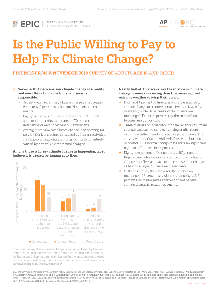 Is the Public Willing to Pay to Help Fix Climate Change? Energy Policy Institute at the University of Chicago & The AFNOR Center for Public Affairs Researches the Public Willing to Pay to Help Fix