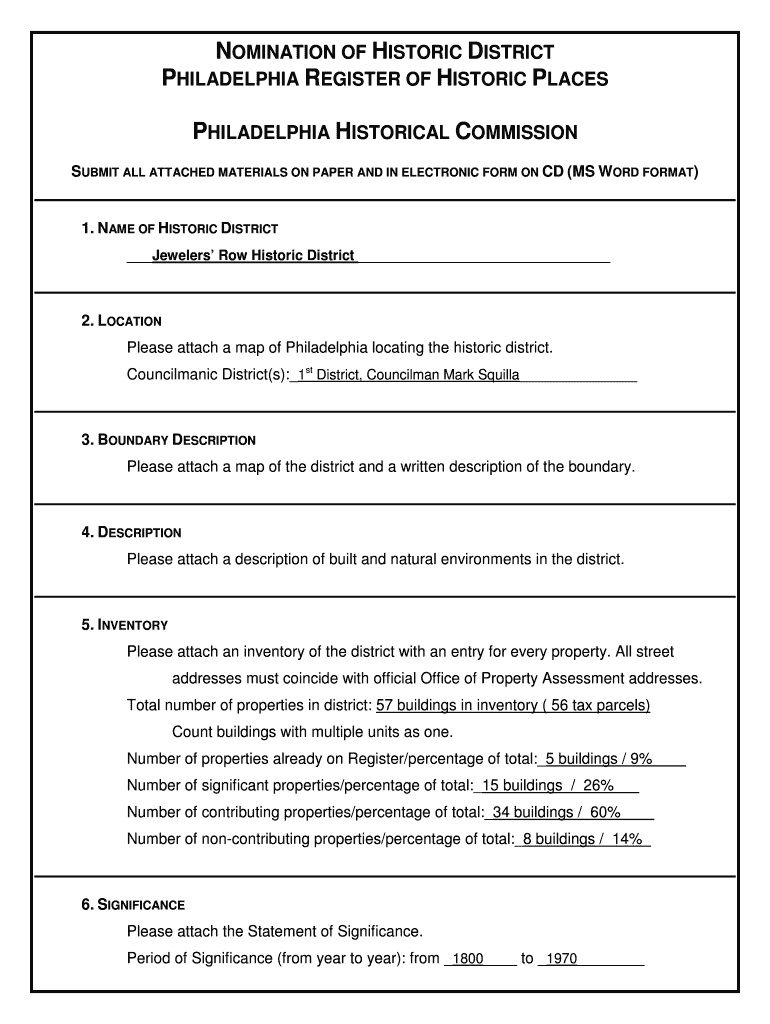 Get the free nomination of historic district philadelphia register of historic ...