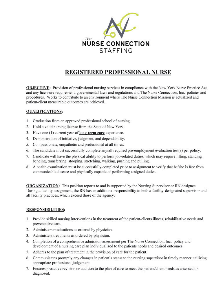 OBJECTIVE: Provision of professional nursing services in compliance with the New York Nurse Practice Act