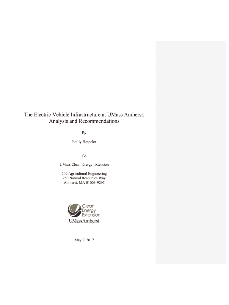 The Electric Vehicle Infrastructure at Mass Amherst: Analysis and Recommendations By Emily Hosteler For Mass Clean Energy Extension 209 Agricultural Engineering 250 Natural Resources Way Amherst,