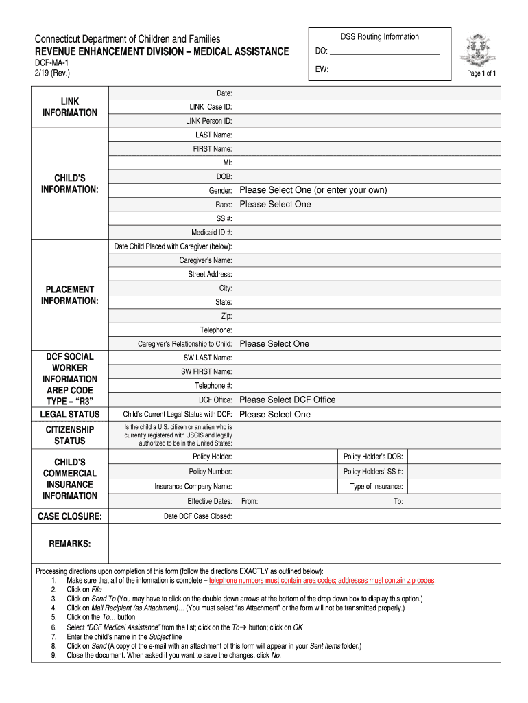 DSS Routing Information Connecticut Department of Children and Families REVENUE ENHANCEMENT DIVISION MEDICAL ASSISTANCE DO: DCFMA1 2/19 (Rev.)EW: LINK Informational: LINK Case ID: LINK Person ID: