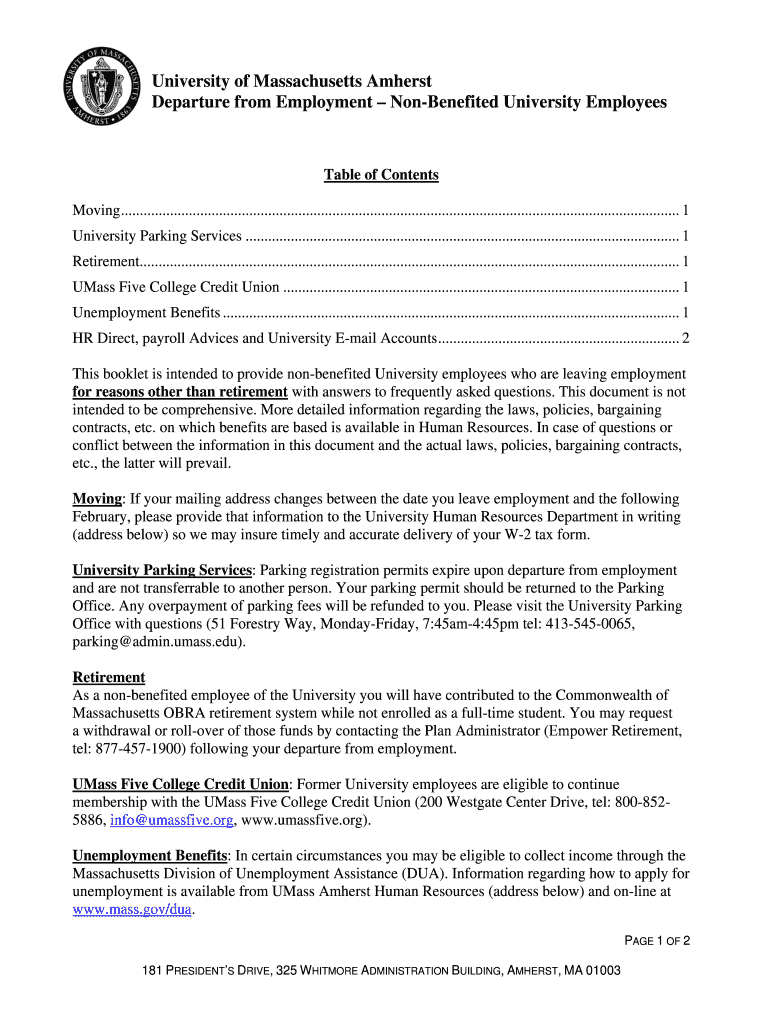University of Massachusetts Amherst Departure from Employment Benefited University EmployeesTable of Contents Moving ....................................................................................................................................................