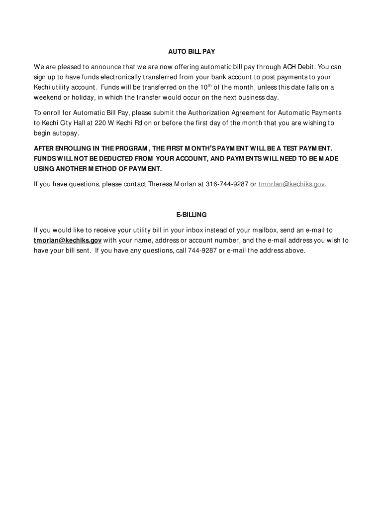 We are pleased to announce that we are now offering automatic bill pay through ACH Debit. You can
