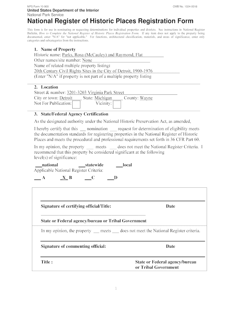 NPS Form 10900OMB No. 10240018United States Department of the Interior National Park ServiceNational Register of Historic Places Registration Form This form is for use in nominating or requesting