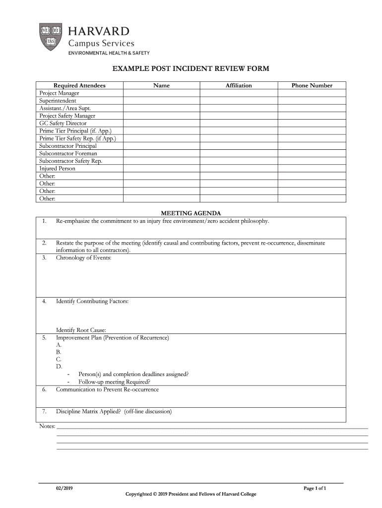 Get the free EXAMPLE POST INCIDENT REVIEW FORM - Harvard University