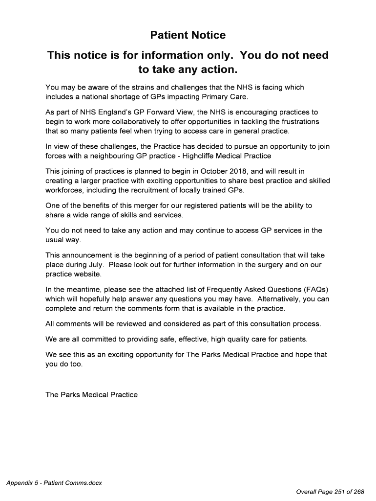 Get the free to take any action. Patient Notice This notice is for ...