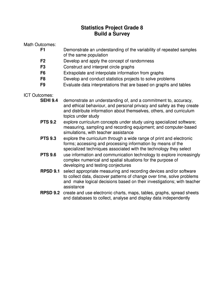 Who Needs the Grade 8 Statistics Project Survey Template?