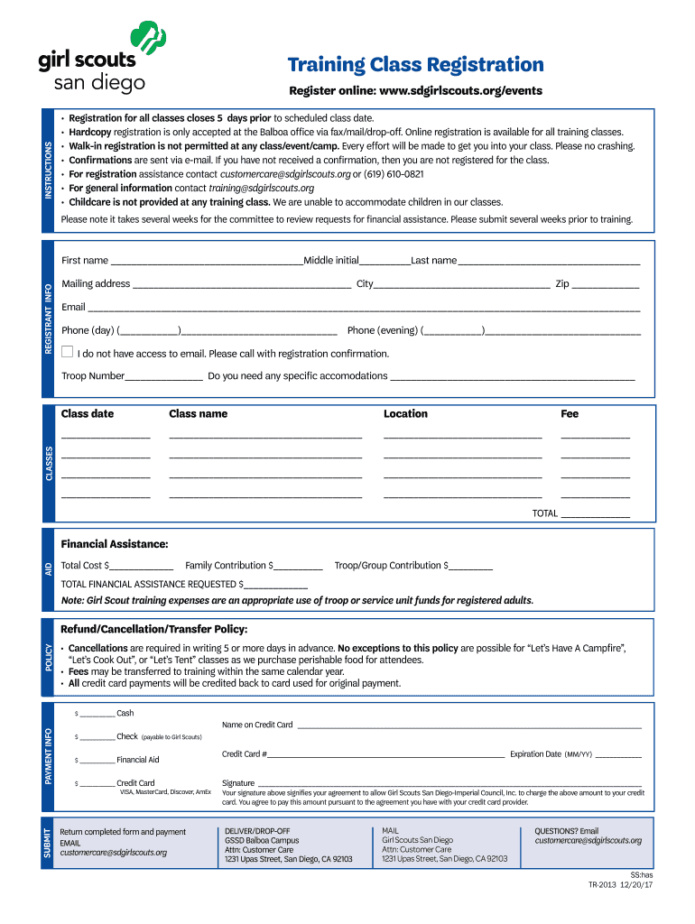 Training Class RegistrationINSTRUCTIONSRegister online: www.sdgirlscouts.org/events