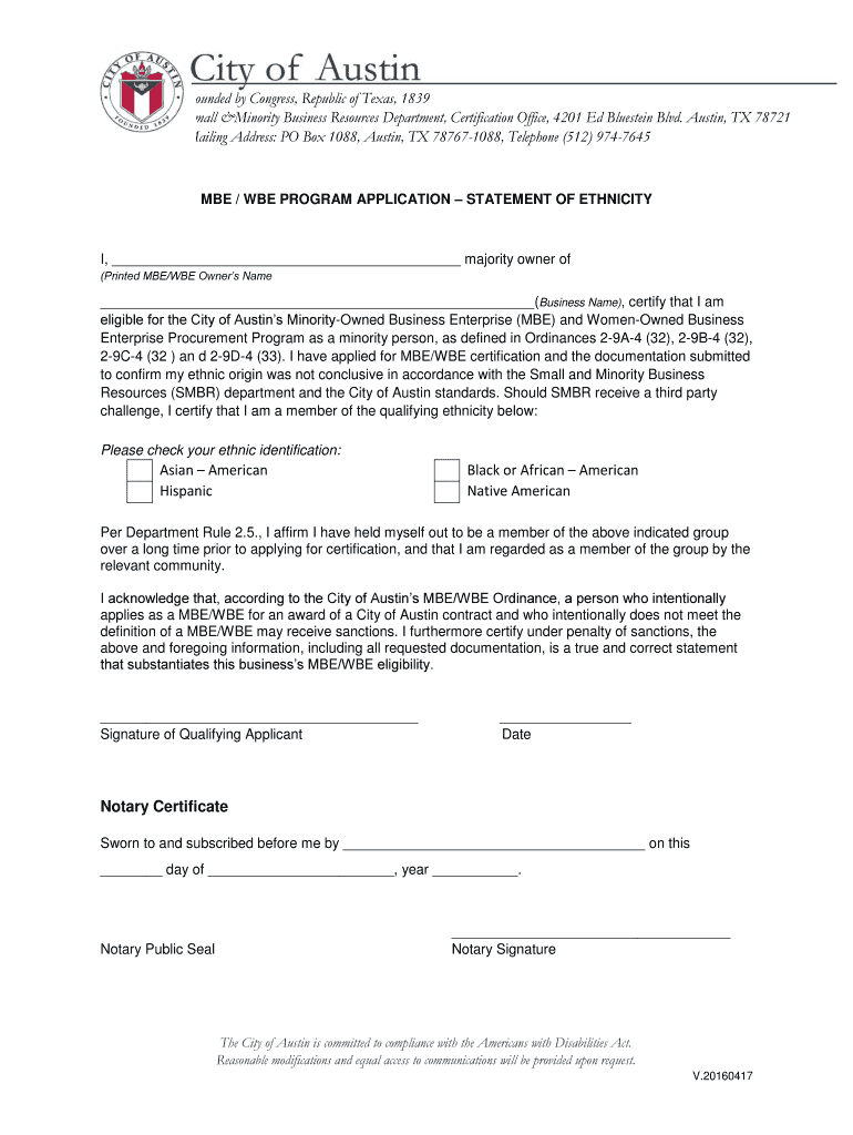 Founded by Congress, Republic of Texas, 1839 Small minority Business Resources Department, Certification Office, 4201 Ed Blue stein Blvd. Austin, TX 78721 Mailing Address: PO Box 1088, Austin, TX