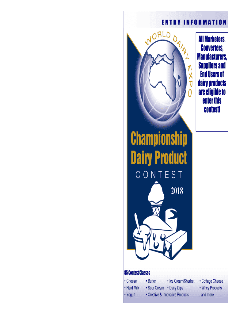 All Marketers, Converters, Manufacturers, Suppliers and End Users of dairy products are eligible to enter this contest!8383 Greenway Blvd., #130 Middleton, WI 53562 Info WPA.net www.wdpa.net 608/836.3336
