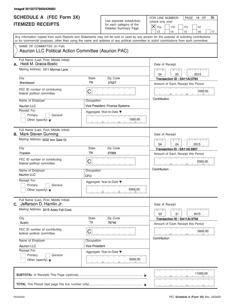 Image# 201507279000426883SCHEDULE A (FEC Form 3X)