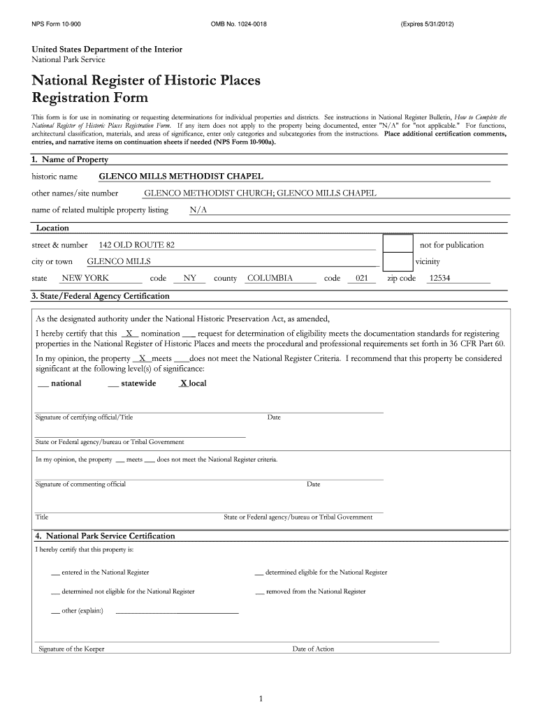 NPS Form 10900OMB No. 10240018(Expires 5/31/2012)United States Department of the Interior National Park ServiceNational Register of Historic Places Registration Form This form is for use in nominating