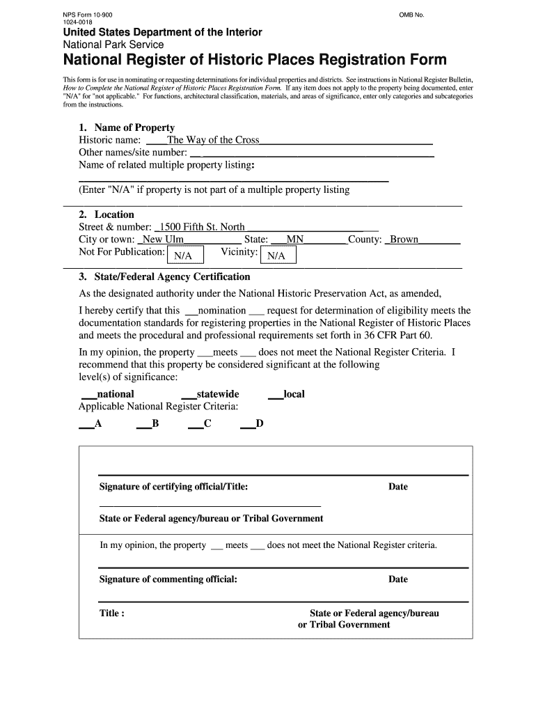 NPS Form 10900 10240018OMB No. United States Department of the Interior National Park ServiceNational Register of Historic Places Registration Form This form is for use in nominating or requesting