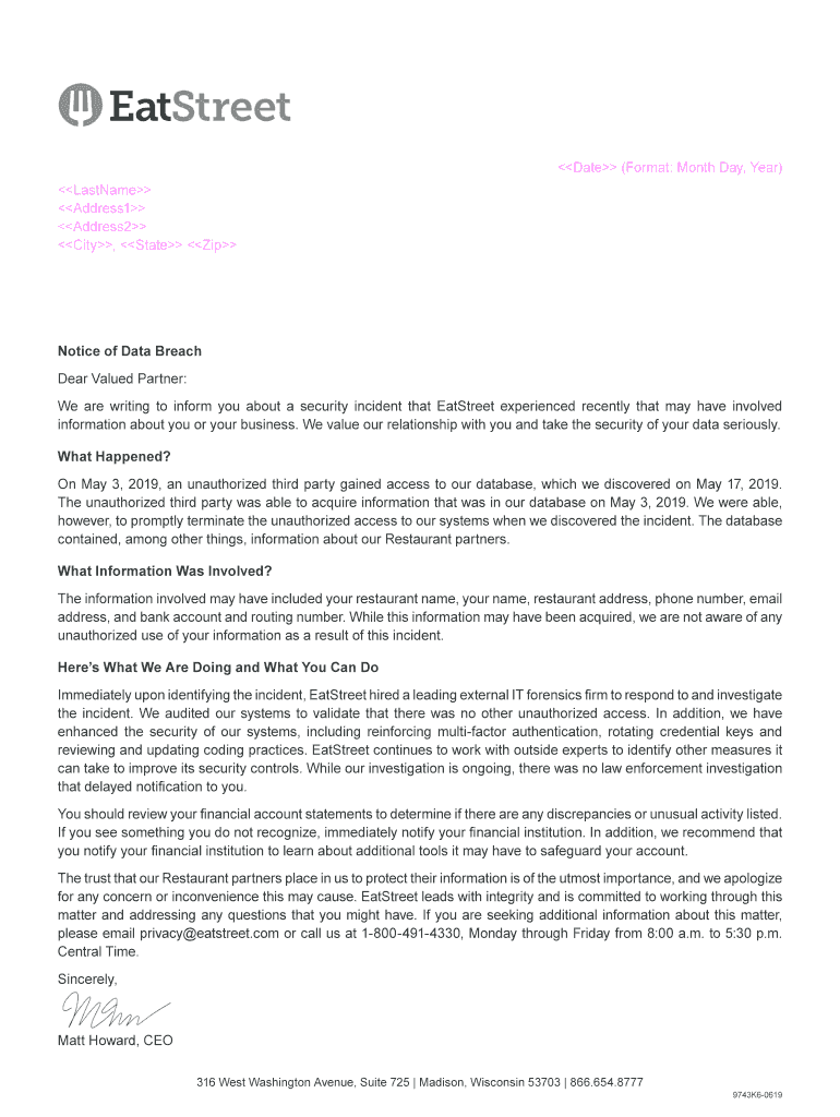 Get the free Notice of Data Breach Dear Valued Partner: We are writing to ... - oag ca
